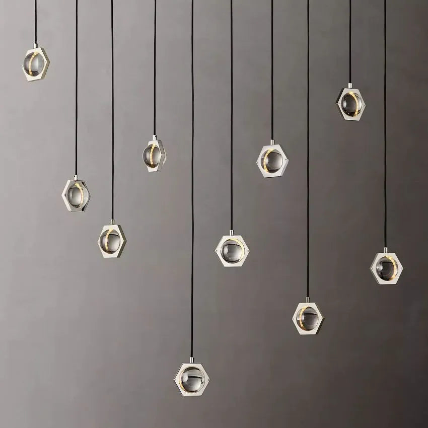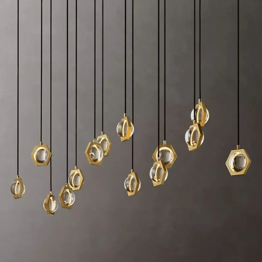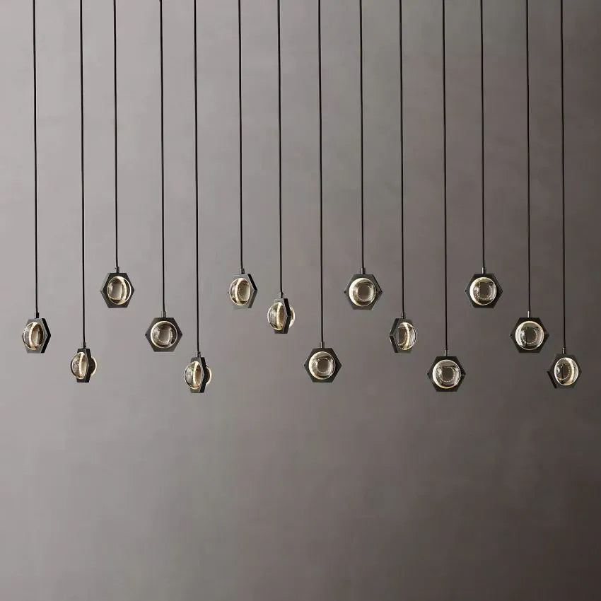 Ecbatant Modern Crystal Planet Linear Chandelier, Linear Chandelier Over Dining Table