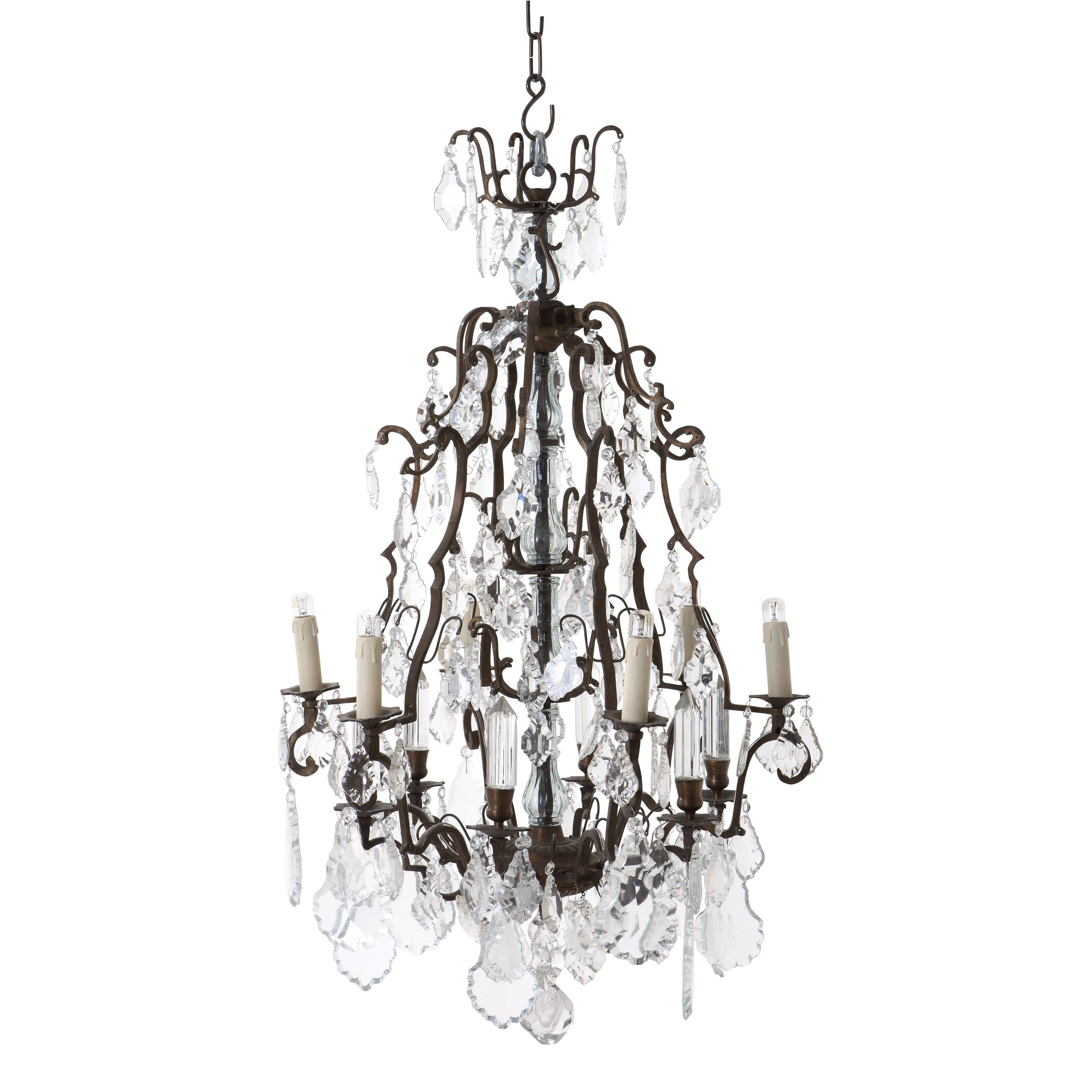 Channel French Boudoir chic into your home with the enchanting Chateau De Wideville Luster. This classic chandelier comprises an antique brass luminaire with sparkling clear glass droplets and features 6 candle-shaped fittings.